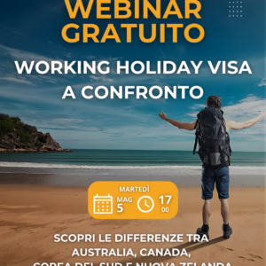 Se stai valutando un’esperienza in una destinazione come Canada, Dubai, Corea del Sud, Regno Unito, Australia o Nuova Zelanda, saremo al tuo fianco in tutto il processo. Il nostro servizio è sempre totalmente gratuito e include tutto il percorso, dal primo contatto fino alla partenza.