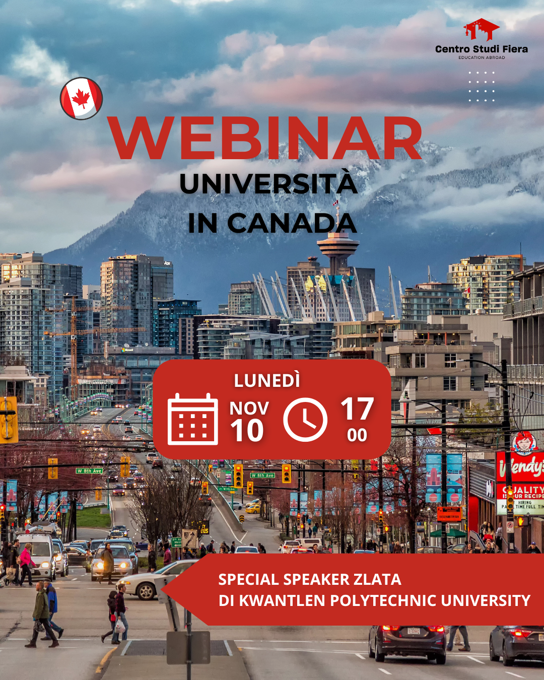 Partecipa al webinar gratuito “UNIVERSITÀ IN CANADA”, che si terrà lunedì 10 novembre alle ore 17, in collaborazione con KPU – Kwantlen Polytechnic University di Vancouver.